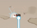 敵との戦闘は,画面中央の枠に敵を収めることで自動的にロックオンしてくれるので,細かな照準技術は問われない。実際に攻撃が命中するかどうかは,武器の攻撃速度(弾速)や間合い,敵の機動力といった要素の組み合わせによって変化するが,ゲームに不慣れな人でも「攻撃を当てることさえできない」といった事態にはならないはずだ。 ただし,敵からの攻撃はなかなかシビアで,さまざまな方向から飛んでくる弾を避けきることは,至難の業のようだ。各方向へのダッシュや,ブースターを用いての飛行を駆使すればある程度回避できるが,ダッシュおよびブースターを使用すると"エネルギー"が消費されていくため,延々と回避行動を取ることは難しい(エネルギーは攻撃,ダッシュ,ブースターなどでも消費されるが,回復は非常に早いので,しばらくすればすぐに全回復する)。そのへんに関しては"慣れ"がすべて解決してくれるのかもしれないが,操作に慣れるまでは,複数の敵と同時に交戦するのは危険かもしれない。 とはいえ,本作では5体のロボで部隊を編成できるようになっており,操作しているロボットが撃破されても,次のロボットですぐに出撃できる。また撃破されたことによる経験値ペナルティなどは発生しないので,そういった意味ではかなり快適なゲームプレイが期待できるだろう(部隊が全滅した場合も,出撃時に選択した,プレイヤー管理の消費アイテムをロストするだけらしい)。