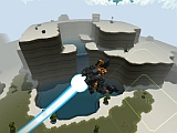kotori氏のプレイを見ているうちに,筆者もロボットを操縦してみたくなり,少しだけ実際に遊ばせてもらった。ただ,現状では本作の操作系統は一般的なFPSタイプ(W/S/A/Dで移動)ではなく,マウス操作が重視された設定になっていたため,思いどおりにロボットを操縦できず,非常に苦労してしまった。やはり,体に染みついた操作方法というものはなかなか修正できないようで,1,2回のプレイでは,kotori氏のような見事な操作に近づくことさえできなかったのが残念。 操作系統に関しても結局は「慣れ」の問題なのだろうが,筆者個人の意見としては,FPSのように自由な(プレイヤースキルに依存する)照準ができないことが,やや不満に思えた。しかし,現状の操作系統(後述)には,初心者でも遊びやすい,飛行中でも攻撃しやすいといったメリットもある。オプション設定で操作系統の切り替えが可能になればいいなぁと感じた次第である。