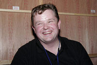 幕張メッセにて2005年7月30日,31日に開催された「スクウェア・エニックス パーティ 2005」にて,「エバークエストII」(以下,EQ2)の開発元であるSony Online Entertainmentのコミュニティー・リレーションズ ディレクター(要はコミュニティを仕切る人)のアラン・クロスビー(Alan Crosby)氏にインタビューをする機会を得た。 当日に指定された場所まで行ってみると,そこには日本のプレイヤーにはすでにおなじみであるスクウェア・エニックス側のプロデューサー Sage Sundi氏の姿も。日米のキーパーソン2人に同時にインタビューする幸運にみまわれた。近々日本でリリースされる予定のアドベンチャーパックのことに始まり,現在開発中の拡張パックのこと,それにパッチの方向性についてなど,時間いっぱいまでねばって聞き出してきた成果をここに掲載しよう。