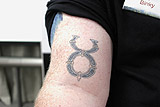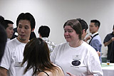 懇親会の様子。クリス氏の自慢のTATOOは要チェック