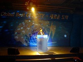 ……というロゴの発表にしては実に派手なイベントとなったが,このイベントの真の目的は,やはり筆頭株主であるKim Jung Ryool(キム・ジュンユル)会長による,持ち分売却に対する,同社の立場表明である。 同社社長のYoon, Woong Jin氏(左の写真)は,日本のEZER社との合意による立場を,以下のように説明した。