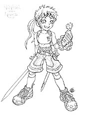 「Ragnarok Online 2」のノービス男性キャラクターの原画最終版(左)と,同ノービス女性キャラクターの原画最終版(右)