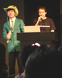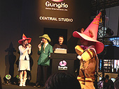東京ゲームショウ2005初日(9月16日)の13時50分から,ガンホー・オンライン・エンターテイメントのブースで行われたステージ発表「ガンホー HeadLine」で,「エミル・クロニクル・オンライン」(以下ECO)の当面のアップデート予定が明かされた。 ステージには,コンテンツ開発部マネージャーの岩田容賢氏と,マーケティング部第2企画グループマネージャーの小島幸博氏,そしてマリオネット「タイニー」が登場。そこにECOのイメージパーソナリティに決定した嘉陽愛子さんも合流して,賑やかなトークとともにECOの現状報告と,アップグレード予定の説明が行われた。