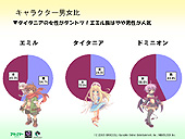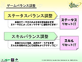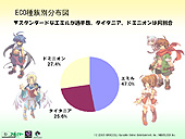 ステージで最初に行われたのは,ECOプレイヤーの傾向を示す統計数値の説明だ。これは以前「こちら」の記事で触れた報告と同じ数値に基づいており,タイタニアで女性キャラクター使用率が圧倒的に高いこと,職業ではウァテスの人気が高く,タタラベはマイナーであることなどがあらためて説明され,クライアントCD-ROMやプレイチケットが同梱された「エミル・クロニクル・オンライン ビギナーズパッケージ(仮称)」が年内に発売予定であることも明かされた。