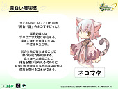 さてこれらに加えて,今回注目すべきなのが「背負い魔」の実装だ。背負い魔は別の生物に寄生して,一定時間ごとに宿主の体力を奪う代わりに,特殊な能力を発揮して宿主を助けるという,不思議な生き物。下に示した発表資料の画像を見れば分かるように,ECOのナビゲートキャラクターであるエミルの肩に乗っていたのが,その背負い魔の一つ「ネコマタ」である。 SAGA1アップデートではこのほか,ステータスバランス/スキルバランスの調整とリセット,一次職へのスキルの追加も予定されているとのことだ。