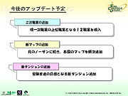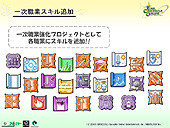 続いてステージでは,実装時期こそ明らかにされていないものの,SAGA1以降のアップデート予定が披露された。 その第一は,12種類におよぶ二次職の導入である。「こちら」の記事の時点では,6種類の名称のみ明かされたわけだが,その完全版である。詳細は,イメージイラストの入った資料の画像を参照してほしい。 残るはノーザン以外の国々のマップと,各地に用意される新ダンジョンだが,これらについては「ただいま鋭意開発中!」とのことで,内訳は明かされなかった。