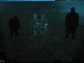 続いて,プレイヤーが作成したムービーの発表が行われた。残念ながら,日本版で募集したものはトラブルで再生できなくなってしまったとのことで,海外版での作品がいくつか上映された。 最初の作品は,非常に情感のこもったセリフがアフレコされた,力の入ったもの。英語で切々と何かを訴える登場人物の姿に,どういったストーリーが展開されているのかと思っていたら,どうも,この人はキルト商人で,キルトが売れないことを延々と嘆いていたのだとか。うーむ。 どの作品もキャラクターのエモーションをうまく使っており,3アカウントから,へたをすると10アカウント以上を使っての力作も多かった。 印象的だったのは,「My Immortal」という作品。これはコボルドのスピリットマスターを主人公とした話で,亡くなった奥さんの魂を召喚しようとするものだ。召喚される魂はランダムなので,何度も失敗を繰り返すものの,ついに召喚に成功する。 合間には,二人の馴れ初めから仲睦まじいシーンの数々,奥さんが人間のアサシンに殺されてしまうシーンなどが挿入されている。そしてせっかく奥さんの魂を召喚したものの,またもやアサシンに奥さんの魂を殺されてしまう。怒りのままに仇のアサシンを葬り去り,人間の砦に向かって突撃してコボルドも死ぬ。ラストシーンでは,別々のスピリットマスターに召喚された二人が束の間の逢瀬を迎えるものの,それぞれのマスターに連れられて行ってしまうという,もの悲しいストーリーだ。 この作品は, http://vnfiles.ign.com/camelot/videos/sept2004/MyImmortal.avi から入手できる。ただし,著作権的に問題のある楽曲が使われているので,ここではURLの記載のみに留めておく。