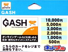 ・GASH500 (500円) ・GASH1000 (1000円) ・GASH2000 (2000円) ・GASH3000 (3000円) ・GASH5000 (5000円) ・GASH10000 (1万円)
