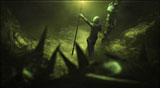 新たに導入される「地下大空洞」のマップは,さまざまな地域につながる道となっており,ダークエルフの本拠地に続く通過点にもなっている。なお,ダークエルフの本拠地「ラスタバド城」は,エピソード5で追加予定とのこと。 地下大空洞エリアの対象レベルは45以上で,地上に生息しない新しいモンスターが登場するほか,ダークエルフ達の村が二つ(隠された村およびレジスタンス村)存在する。 これらの村には,ラスタバドのダークエルフ達を束ねる王ダンテスから離反し,あるいは抵抗を続け,あるいはひっそりと隠れ住むダークエルフ達が集まっている。ラスタバドのダークエルフとアデン王国は対立関係にあるので,この村の住人達はいわば敵の敵。味方となってくれることが期待できる。 前述のように大空洞は各所につながっており,ここから同じく新マップの「海賊島」「地底湖」「巨人の遺跡」などに行ける。海賊島にはかつて世界一の大海賊と言われた「ドレイク」の秘宝が眠っているといわれ,地底湖には「精霊の墓」と呼ばれる四大精霊の力が集う場所がある。そして巨人の遺跡では,神話の時代に起きた歴史の一部に触れられる。 同遺跡は,ダークエルフがオームの労働力を使い,ブラックミスリル原石を採掘していく過程で発見した,古代巨人族の墓という設定。実はそこに隠れ棲んでいた魔族達が,自らの存在を隠すために,古代の巨人の呪いで採掘を中断させていたという,いわくつきの場所でもあるらしい。
