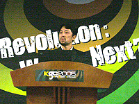 元Blizzard Entertainment社の有名プロデューサーであるBill Roper氏と並んで,KOREA GAME CONFERENCE 2005の口火を切る役を務めた,Kim Hakkyu氏。氏の基調講演には,ざっと見ても300人余りの聴衆が殺到して,多くの人は“立ち見”で講演を聞くしかなかった。かく言う筆者も1時間の間ずっと立って講演を聞いたが,同氏の熱情的な講演と聴衆たちの熱意に講演会場の雰囲気は盛り上がり,脚の疲れなど気にならなかった。