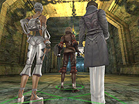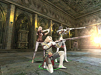 複数キャラクターを扱う“MCCシステム”(マルチキャラクターコントロールシステム)が,よく分かる場面。足下に緑色の円があるのが,今操作しているキャラクターだ