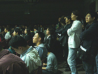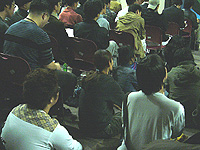 というわけで,通路をふさいで座り込んでいる人々。学生が中心だろうか,熱心にメモを取ったりして,みな一生懸命だ