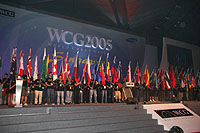 現地時間の11月16日,世界最大級のe-Sportsイベント「World Cyber Games 2005」(以下,WCG2005)が,シンガポールのサンテックコンベンションホールにて開幕された。今回の開幕式には,世界67か国から約700人の選手を含む約7000人が参加した。