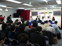 声優陣からのコメントの後は,主にサーカス 松村氏から今後の展開,関連製品やプロモーションについて告知がなされた。インターネットラジオ「音泉」で放送中のプロモーション番組や,2月10日から,ゲーマーズ各店舗や総計50万部の配布が始まった小冊子「まるごと一冊トゥルーティアーズ」などについて確認したあと,