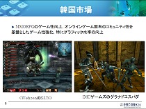 ●韓国での海外産オンラインゲームの状況 韓国内でサービスされている,海外産オンラインゲームについても状況が解説された。