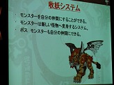 「収妖システム」というのがまたとんでもないものだ。これは,モンスターを仲間にできるというものだが,ボス級のモンスターまで収妖可能という,とてつもないものとなっている。さらにモンスターを組み合わせて新しいモンスターを作れるという,どうやってバランスを取るのかと心配になってしまうような,もの凄いシステムらしい。収妖は一時的なものなのか,永続的なものなのかなどは,まだ開発中につき明らかにできないとのことだが,仮に一時的なものとしても,相当に強力な戦力を手にすることになるだろう。