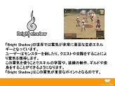 ●Bright Shadow Bright Shadowは,これまで外部に存在すら知られていなかったMMORPGだ。今回が世界初公開となった。キャラクターは可愛い系だが,霊気(生命エネルギー)が重要な意味を持つ。霊気は,モンスターを倒したりすることで集められるもので,生産やスキル習得など,多くの作業に必要となる。日本での展開も視野に入れて開発されているため,細かいところまでかなり気を配って作られているという。詳細はまだ不明だ。