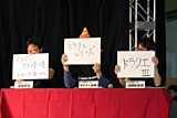 「最近読んだ漫画は?」「一番好きなゲームは?」「エミル・クロニクル・オンラインにぜひ実装したいと思う要素は?」といった質問に対して,それぞれに回答を書いて示すパネリスト達だったが,トークショウとしてはどちらかといえば,原田ひとみさんのボケっぷりが最大の見どころだったようだ。