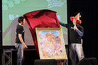 掲載される漫画については,山本氏からあらためて説明があり,現在のゲーム世界より過去の時代が描かれること,それゆえ,漫画で起きた出来事が,その未来であるゲームに反映されること,などが述べられた。山本氏と野上氏の話はさらに積極的な方向に進み,過去の時代に行くイベントを作って,その結果で次号の掲載内容が変わるような展開もあり得ることが語られた。ゲームやイベント,あるいは漫画作品そのものの面白さにどこまで影響するファクターか読みきれないが,積極的かつ斬新な試みであるのは間違いない。連載の開始は野上氏の口から「暑くなって,セミが鳴く頃」という言葉で示されたとおり,夏頃になるようだ。