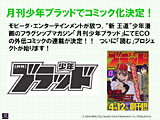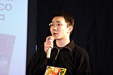 壇上にはMOVIDA ENTERTAINMENT 月刊少年ブラッド編集部の野上泰大氏が登場し,「中高生に楽しんでもらえるような王道の少年誌」という同誌の内容や,創刊号が240円,通常号も290円という価格設定,Webサイト(オリジナル作品を無料購読できる),携帯電話向け(雑誌と同内容をダウンロード購読できる)と同時に展開していくというコンセプトなどについて説明があった。