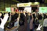 ステージイベントの締めくくりは,エミル・クロニクル・オンラインのイメージパーソナリティ嘉陽愛子さんのミニコンサートと,プレゼント争奪じゃんけん大会。このタイミング,ざっと見たところで180人内外と思われる来場者が一斉に,ステージ上のパーソナリティとじゃんけんをするさまは,なかなかに壮観だった。