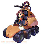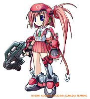 ■ユーリ(CV:森永理科) 型式番号EPN-003GF YU-RI。最新型万能機動兵器のコアユニット。戦闘の際は自走砲など,砲撃系強化ユニットを装備する遠距離射撃戦闘型。見た目相応な子供っぽい一面も持つ一方,目的のためなら手段を選ばない。その場さえ面白ければまったく問題なしという小悪魔で,目端の利くお利巧さん。ユニットタイプは砲撃系で,バリエーションは「自走砲」「ロケット砲」「対空砲」。