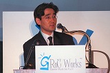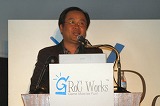 会場となったのは,2005年10月に東京都千代田区西神田に総工費10億円以上をかけて作られた,未来的な内装のレストラン「Pandoras」。立体的な構造のフロア内の,ひときわ高い場所にステージが設けられ,ロックワークス代表取締役の岡村 隆氏の挨拶を皮切りに,新作タイトルの紹介が行われた。 岡村氏は,挨拶で「弊社は新しいサイバー空間の文化を提示し,その価値と収益を社会に還元できる企業を目指して設立した」と前置きしつつ,キーコンセプトの「Game Must be Fun!!」(ゲームは楽しくあるべき)を強調。ひと言ひと言を噛みしめるように語っていたのが印象的だった。