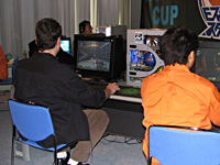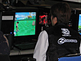 例えば前出のBattlefield 2対戦も,予定時刻になると声がかかって,数人がプレイ開始。スタッフの実況や解説が加わり,それに呼応する形で途中から参加者が増えていくといった感じ。勝敗は重要でなく,純粋に対戦を楽しむ。別に全員が参加するわけではなく,Battlefield 2の対戦参加者のすぐ近くでは,数名が「スカっとゴルフ パンヤ」をプレイしていたり,別の場所では持ち寄ったニンテンドーDSで対戦している人がいたり。 e-Sports関連のイベントにありがちな「カッチリしたルールやスケジュールがもたらすハードルの高さ」のようなものはなく,参加者は終始,思い思いに遊んでいた印象だ。
