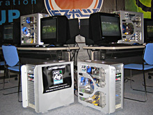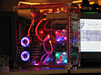 BIGLANでは筐体のハデさを競う「デコパソコンテスト」も開催されていた。まだまだ本腰を入れている参加者の数は多くないが,本気モードの参加者は,ただ光るだけでなく,PC内にジオラマ風の箱庭を作るなど,一歩先行く作品を作り上げていたのが印象的