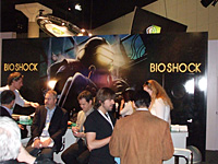 そのSystem Shock 2を手がけたIrrational Gamesの新作が,E3 2006で初公開となった「Bioshock」である。 Bioshockの発売元は「Grand Theft Auto」シリーズでお馴染みの2K Gamesブランド(Take-Two Interactive Software)。System Shock 2とはパブリッシャが異なっているためか,Irrational Gamesも「スピリチュアルな後継」とだけ述べているのだが,果たしてどうだろうか。2K Gamesのクローズドブースで確認できた内容をお知らせしていきたい。