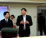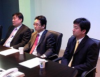 この設立式典が始まる前の空き時間に,mgameのパク ヨンス氏(CEO),KRGのノー チョル氏(Marketing Div./Exective Director),そしてKRGチャイナのパク ジフン氏(President & CEO)に話を聞く機会を得た。