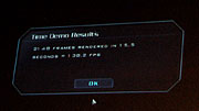 さて,2台のPCで同時に始まったDOOM 3のベンチマークデモは,Core 2 Duo搭載PCのほうが目に見えて早く終了し,スコアとなるフレームレートの測定結果を表示していた。 “証拠写真”を下に並べたが,Core 2 Duo搭載PCでは176.9fps,Athlon 64 FX搭載PCのスコアは138.2fps。CPUの差だけで,約30%も,Core 2 Duoのスコアが高く出た格好になる。
