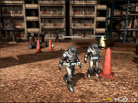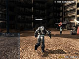 「BTR DEMO」は,マイクロビジョンの開発した物理エンジン「BTR」と,3Dグラフィックスエンジン「Red Boots」を搭載したテクノロジーデモ。本来は,ほかのゲーム開発会社や,グラフィックス関連企業に向けて技術力をアピールするために作られたものだが,ゲーム仕立てになっているところがなんとも面白い。寂れた公園を舞台に,メタルのスーツを着たキャラクターが,モンスターと戦ったりモノリス(の割には複雑な形をしているが)を壊したりするという,変わった雰囲気のデモだ。6月1日に発表されたVer1.0に比べ,今回の2.0にはネットワークを使った対戦機能が搭載され,新しい楽しみ方が追加されているとのこと。下の写真は,マイクロビジョン社内でVer2.0のテストを行っているところで,ネット対戦には2〜4人が参加できる。