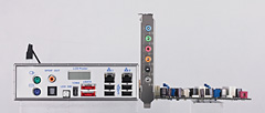 SupremeFXサウンドカード(写真中央)と,それに接続したArray Mic(写真左手前)