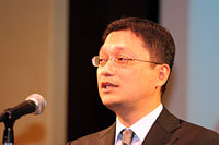 冒頭で挨拶に立ったガンホー/ガンホー・モード 代表取締役社長の森下一喜氏は,「晴れやかな場にはふさわしくないお話ではありますが」と断ったうえで,過日の不祥事について,エンドユーザー/関係各社に陳謝,今後こうした事態が起きないよう努力していく旨を述べた。 そのうえで「“ガンホー”という社名は,ものすごく前向きな会社であることを意味しており,アグレッシブに前へ進み続けます」と言明,オンラインゲームビジネスが,映像/音楽配信やeコマースを含んだものになっていくことは,1999年に会社を設立して以来,抱き続けていた展望であると述べ,別してコミュニティの重要性を強調した。