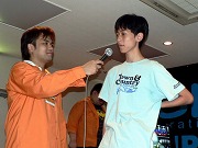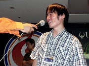 準決勝戦までは2〜3試合が同時に行われ,そのうちのいずれかの対戦の模様を,ステージ横に設置されたモニターで観戦するというスタイルで進行。GoodPlayer.jpの犬飼氏が,モニターに表示する画面を切り替えつつ試合経過の実況を行い,ハイレベルなプレイヤー達の妙技について解説したり,e-Sports種目としてのQuake 4の魅力を伝えたりしていた。