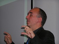 ここしばらく,基調講演などの不可解なキャンセルを続けていたイギリスの奇才Peter Molyneux(ピーター・モリニュー)氏。もちろん,その背景にはマイクロソフトとの買収話が絡んでいたわけだが,ゲーム業界でも屈指の人気を誇る人物だけに,ひょっとしたらヤキモキしていたファンだっているかもしれない。 今回も,イギリスでのテロ未遂事件以降のセキュリティ強化がたたり,ノートPCを入れたバッグの届け出で空港の職員と一悶着あったとかで,GCDCでのスケジュールをすべて再調整せざるを得ないほどの遅刻をやってのけた。
