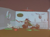「一方,ハリウッド映画に目を向けると,まったく異なる観点でアクションを描いている」(モリニュー氏)。その例として挙げたのが,クエンティン・タランティーノ監督による,血みどろのアクションシーンで有名な映画「キル・ビル」である。 モリニュー氏が指摘するのは,ユマ・サーマンが22分間に88人という相手を一撃必殺で皆殺しにするのに対し,最後の“ボス戦”,つまりルーシー・リューとの雪の庭園における死闘では,たった一人の相手に18分という時間を費やしている点だ。 モリニュー氏は,「『キル・ビル』で描かれているのは,相手の刀が自分に当たるかもしれないという緊張感。雪の庭園なり,大きな宴会場という環境を駆使し,その刀に一回でも当たると死んでしまう,という事実がアクションシーンにドラマ性を与えている」と説明する。これを突き詰め,「アクションはボタン操作に支配されるのではなく,デザイナーが設計したゲーム内のロケーションによって決定していくのだ」という逆転の発想をすることで,ワンボタンでも楽しめるアクションを実現しようというのである。