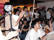 写真下段左:会場前に並ぶ参加者。なかには九州から来た人や,関東から来た人も含まれていたがもちろん地元神戸や大阪からの人が中心である