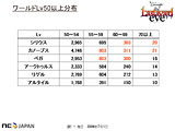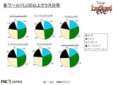 さて,話の順番は前後するが,The Lastavard Eveではユニークな現状報告「アデン国勢調査」が,エヌ・シー・ジャパン 笠原氏の解説とともに披露された。これは2006年7月1日に行った調査に基づく資料で,現在のリネージュ全ワールドのプレイヤーのクラス比,高レベルキャラクターの分布,レアなセットアイテムのワールド別出現数などをまとめたもの。7月1日の時点で半年以上ログインしていないアカウントは,調査の対象となっていないため,かなりゲームの現況に近いデータといえるだろう。 血盟同士による攻城戦が非常に盛んなリネージュでは,相手血盟の戦力を知ることが重要な意味を持つ。それゆえ,有名プレイヤーほど現在のレベルや所持している武器/防具の能力値,精錬具合などについての情報は秘匿せざるを得ない。その意味から,個々のプレイヤー情報と切り離した形で運営側が語る現況は,プレイの指針になる点で非常に興味深いものなのだ。