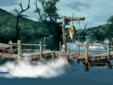 ■釣りシステム 鬼魂では湖や海のような特定エリアで 釣りをすることができるシステムがあります。 「釣りざお」を装備して「えさ」を右クリックで指定し、スペースキー(攻撃ボタン)を押すことで釣りができます。 釣れた獲物は商店で売却したり、回復アイテムとして使用することが可能です。 釣りをやめる場合はESCキーを押します。