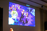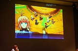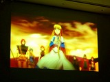 イベントはまず,「テイルズウィーバーヒストリー」と題された,チャプター1からチャプター13までのゲームシーンを集めたダイジェストムービーで幕を開けた。やはりボス戦などで多くの参加者達が苦労したのか,戦闘シーンの紹介場面では,参加者の中から,ムービー中のキャラクターに対し,「つえー」といった声が上がるなど大いに盛り上がっていた。