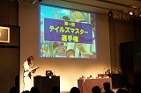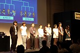 さて,激戦を制して見事優勝を果たし,テイルズマスターの称号に輝いたのは暁さん。優勝賞品としてレアアイテム「真プラチナウィング」が贈られ,さらに記念品として,ミラの絵が描かれた「キャラクターデザイナー直筆サイン入り色紙」と,クリスタルトロフィーを手渡された。また,惜しくも2位となったカナンさんには,こちらもレア度の高いゲーム内アイテム「真・明王之炎」が贈られた。参加者達の激戦で,会場も大いに盛り上がったここまでで,第一部が終了した。