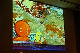 続いてはペンギン3兄弟が経営している,エルティボの町の旅館が紹介された。「あるとき,旅館の主人が今の生活に疑問を抱いて旅館から離れてしまい,そこにいたペンギン達が仕方なく旅館を切り盛りしている」という阿部氏の説明に,会場からは大きな笑いが。そしていよいよ,阿部氏がエピソード2の開始時期を答えようとしたときに,それを遮るかのように会場に雷鳴が轟き,スクリーンにはエピソード2冒頭のストーリーが流された。
