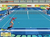 さて,肝心のゲーム部分についてだが,操作系統は至ってシンプル。キーボードのカーソルキー,A/S/Dキー,スペースバーだけで,テニスの多様なアクションが楽しめるようになっているので,ゲームに不慣れなプレイヤーでも,気軽に楽しめる。 とはいえ,トップスピンはカーソルキー+A,スライスはカーソルキー+S,スマッシュはカーソルキー+AorS,ドロップショットはカーソルキー+D,ロブショットはカーソルキー+Dといった具合に,複雑なアクションを任意に繰り出すことが可能。プレイヤーの技量に応じて,多様なプレイスタイルが楽しめる。 また,プレイヤーキャラクターとNPCには“スタミナゲージ”が設定されており,スタミナが一定量以下になると,キャラのパワーやスピードが減少するという仕様も導入されている。1ゲームが終了すればゲージは回復するが,スタミナ配分がゲームの鍵を握ることは,間違いないだろう。 スタミナゲージの減少は,スキルの使用で発生する。スキルには,キーの組み合わせで繰り出す“高級スキル”,特定の条件を満たすことで発動可能になる“状況スキル”,キャラクターごとに用意されている“必殺技”などがあり,ゲームに迫力と爽快感を付与している。 なおゲームモードに関しては,自由対戦,順位競争モード,グランプリモード,サバイバルモードなどが,すでに実装されていた。