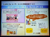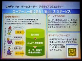 テクモによるLieVoの説明には,「Web2.0」というキーワードが何度も使われていた。Web2.0とは,将来のウェブそのものを指す,やや漠然とした言葉ではあるが,その特質とされている事項に共通する要素がある。 その要素とは,ユーザーが積極的に参加したり,コンテンツの作成/編集に関わったりできるということだ。つまり,WikiやSNSの本質はとてもWeb2.0的であるといえる。 LieVoでは,そのようなことを行える下地,環境をユーザーに提供していきたいということなのだろう。