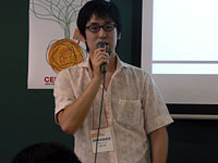 さて,講演内容もさることながら,「機神飛翔デモンベイン」がまさしくグラフィックスをはじめとする表現力により,スマッシュヒットをカマしたこのタイミングで,ニトロプラスの人を呼んできた着眼のよさには,それだけで感心すべきものがある。ではそれは,どのように実現したのか? 会場で聞いてみたところ,今回仕掛け人となったのは,CEDECの押しも押されぬキーパーソンである,IGDAの板垣貴幸氏。同じく会場で板垣氏に少しだけ時間をもらって話を聞いてみた。それによるとニトロプラスに関しては,氏の個人的な人脈で「最近元気のある会社がある」という紹介を受けて,話を繋げたものらしい。そして,CEDEC 2006でセッションを設けた意図は「ゲームグラフィックスについては3Dばかりが取り沙汰されるようになってしまったが,その一方で2Dのグラフィックス技術に関するセッションも必要と考えているので,ご協力をお願いした」という経緯なのだそうだ。 もっぱら「萌え」絵を題材にしたセッションであるが,それが今日のゲーム開発で必要な技術であることは論を待たないし,絵の種類を問わない作業効率やモチベーションの話も,講演には含まれていた。ざっと見たところ200人弱の受講者を集め,立ち見すら出ていたのは,話題性と実用性,両方を兼ね備えた講演内容の賜だろうと感じた。(Guevarista)
