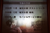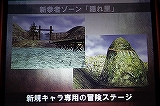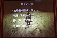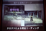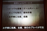 破天の章の概要説明が一通り終わると,再び松原氏が登場。同拡張パックと連動する「モバイルサービス」構想を明らかにした。 モバイルサービスは2007年春のサービス開始を目標に開発が進んでおり,携帯電話を通じて親書(メール)の送受信や,知行/採集/生産が可能になる予定だという。ゲーム内世界がより身近になるサービスなので,プレイヤーならば非常に気になるところだろう。こちらに関しても,詳細が決まり次第改めてアナウンスされるので,楽しみに待っていよう。 なお,同拡張パックの発売スケジュールに関しては,2006年11月に「テストリリース」(βテストのことだろう)が行われ,2006年12月に販売が開始される。価格は未定とのことだが,クライアントは飛龍の章と同様,パッケージ版/ダウンロード版の2種類が用意されるので,近所にPCゲームショップがないという人でも,気軽に購入できるだろう。