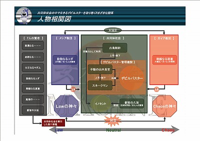 なお,共同体社会体制のもと,“東京再生”と“悪魔の出現量の増加への対応”を目的に,“メシア教団:大司教”と“ガイア教団:大僧正”との間で結ばれた不可侵条約を,“大協定”と呼ぶ。