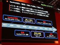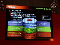 その後は当初のプログラムどおり,NeoWiz Japan,COOのチェ・ガンホ氏の,日本語による挨拶が行われ,続いて同氏によるNeoWiz Koreaの簡単な紹介がなされた。この中で同氏は,1997年の設立から約10年の歴史を,「一言で振り返ると,変化と革新の歴史だった」と述べた。累積登録者数2000万人に達する,韓国で最も大きなコミュニティサービスの一つを提供してきたという同社の実績に対する,率直な感想なのだろう。